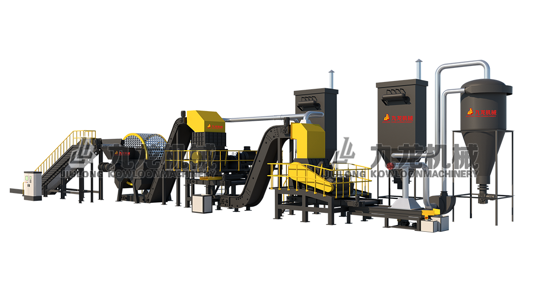 4.鋼絲分離機:使橡膠和鋼絲分離,並加工成膠(jiāo)粒(10mm-20mm)。